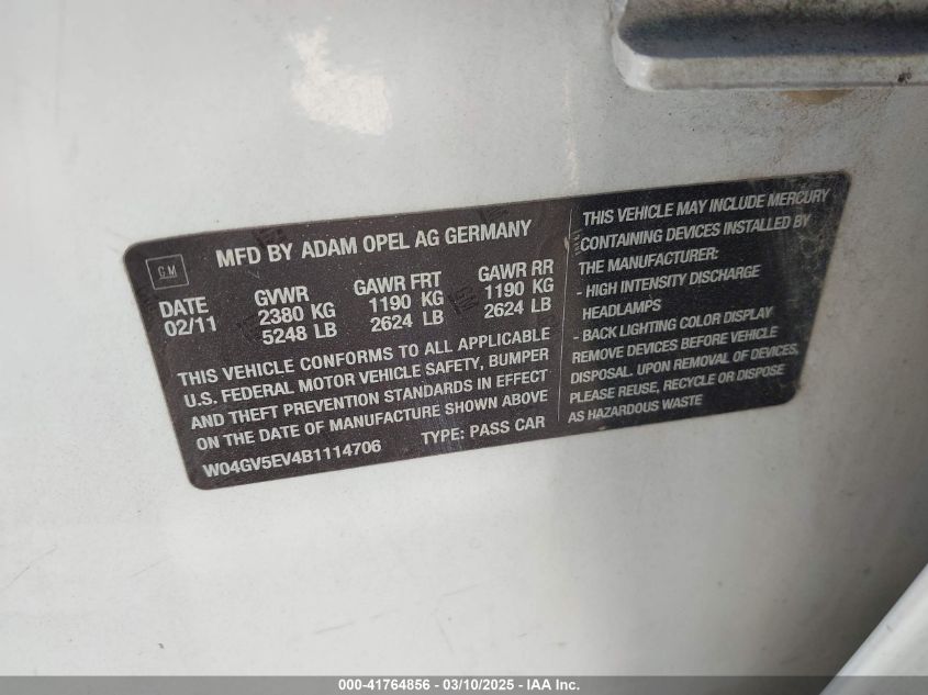 2011 BUICK REGAL 2011 Gasoline, 2.0, Front wheel drive, VIN - W04GV5EV4B1****** from the USA