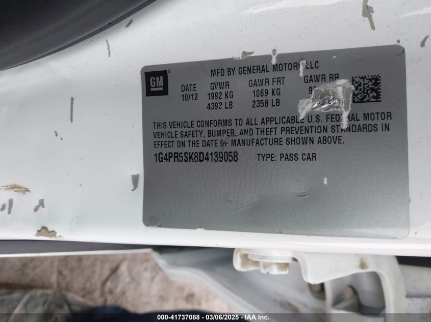 2013 BUICK VERANO 2013 Gasoline, 2.4, Front wheel drive, VIN - 1G4PR5SK8D4****** from the USA