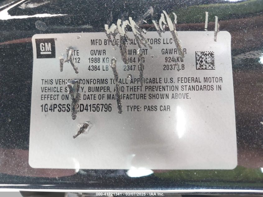 Color BlackCylinders 4Drive Front wheel driveVIN 1G4PS5SK2D4******State Run & Drive VerifiedDamage Front or back