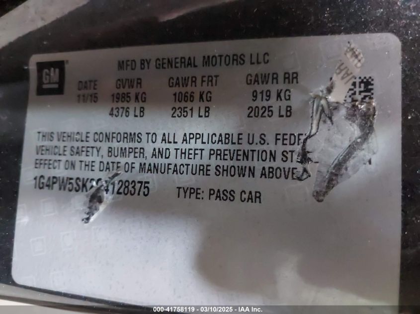 2016 BUICK VERANO 2016 Gasoline, 2.4, Front wheel drive, VIN - 1G4PW5SK2G4****** from the USA