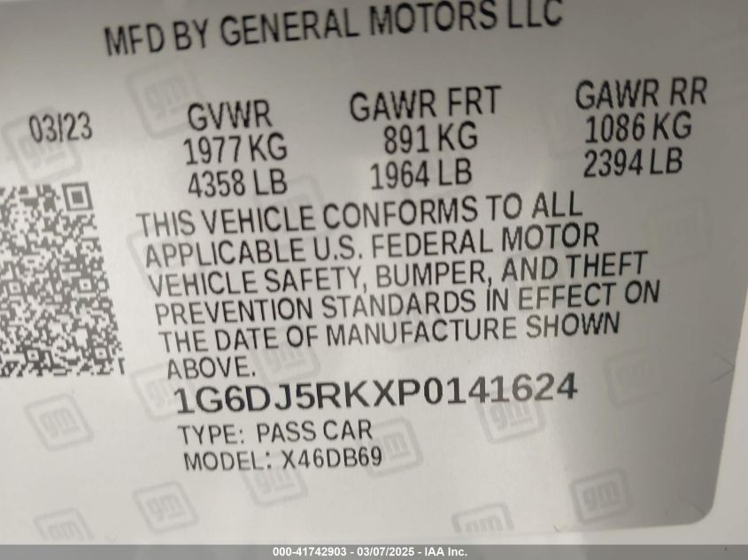 Color WhiteCylinders 4Drive Rear wheel driveVIN 1G6DJ5RKXP0******State Run & Drive VerifiedDamage Front rightAuction date 2025-03-26