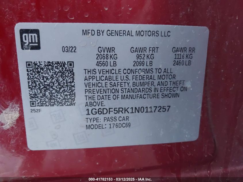 Color RedCylinders 4Drive Full driveVIN 1G6DF5RK1N0******State Run & Drive VerifiedDamage Front or back
