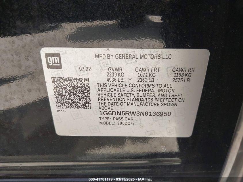 Color BlackCylinders 6Drive Full driveVIN 1G6DN5RW3N0******State Run & Drive VerifiedDamage Front or back