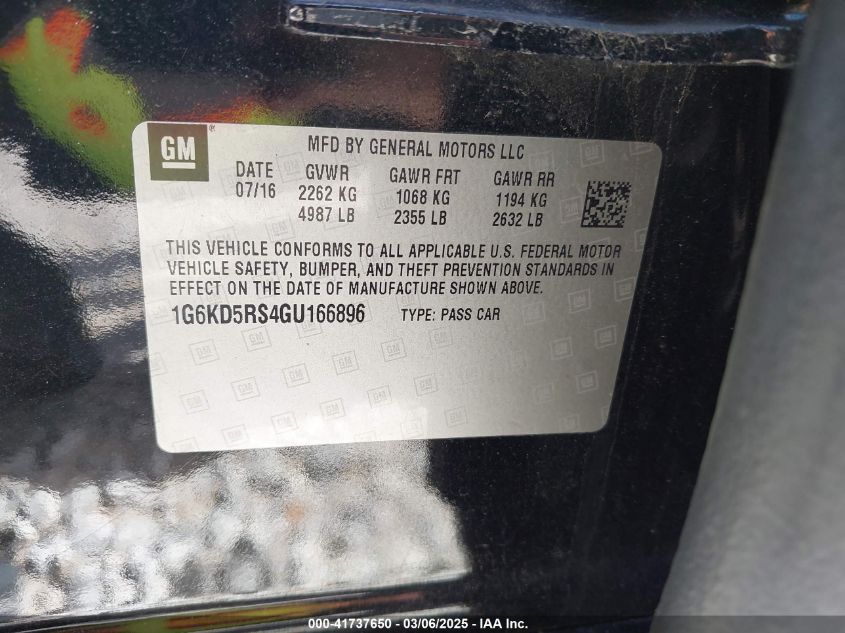 2016 CADILLAC CT6 2016 Gasoline, 3.6, Full drive, VIN - 1G6KD5RS4GU****** from the USA