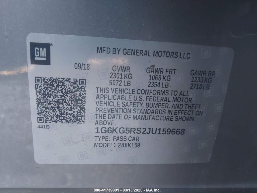 Color GrayCylinders 6Drive Full driveVIN 1G6KG5RS2JU******State Run & Drive VerifiedDamage Front or backAuction date 2025-03-25 AutoRIA