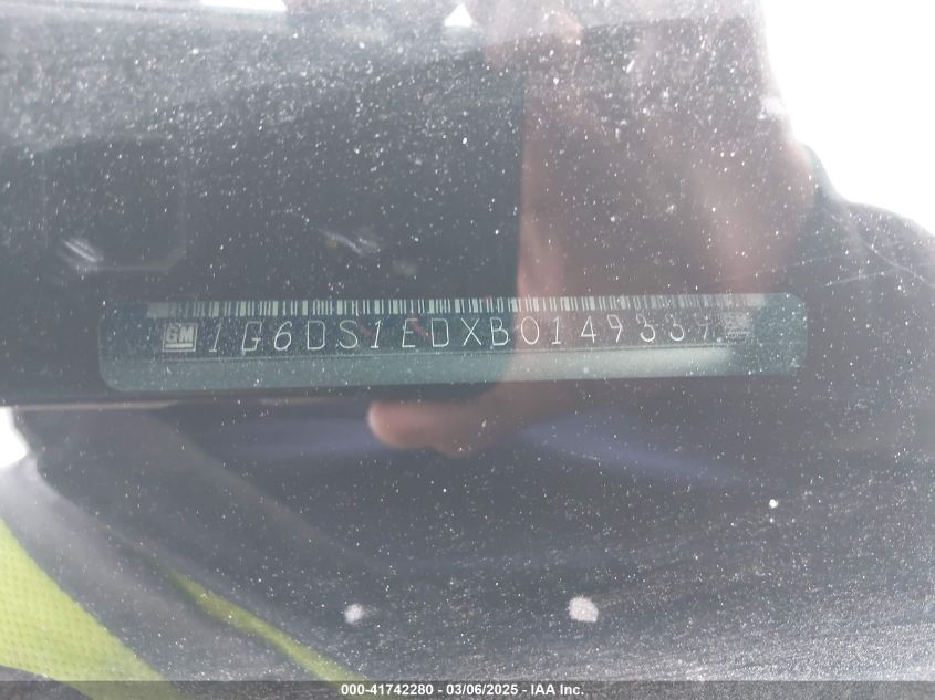 Color BlackCylinders 6Drive Full driveVIN 1G6DS1EDXB0******State Run & Drive VerifiedDamage BackAuction date 2025-03-24 AutoRIA