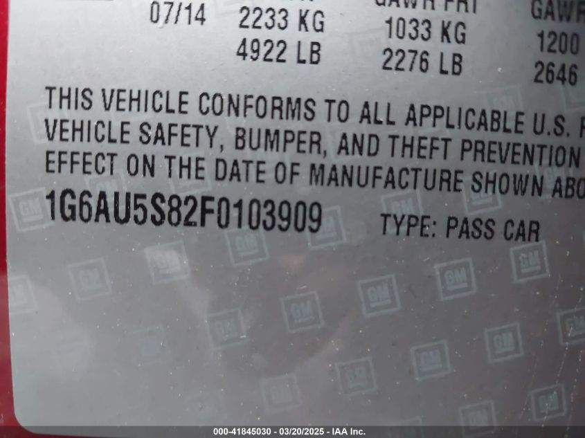 Color Cylinders 6Drive Rear wheel driveVIN 1G6AU5S82F0******State Run & Drive VerifiedDamage Front or back AutoRIA