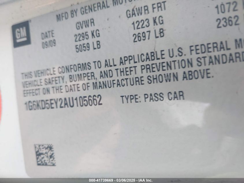 Color SilverCylinders 8Drive Front wheel driveVIN 1G6KD5EY2AU******State Run & Drive VerifiedDamage Front or backAuction date 2025-03-26