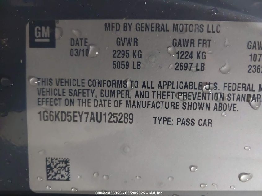 Color Cylinders 8Drive Front wheel driveVIN 1G6KD5EY7AU******State Run & Drive VerifiedDamage Front right