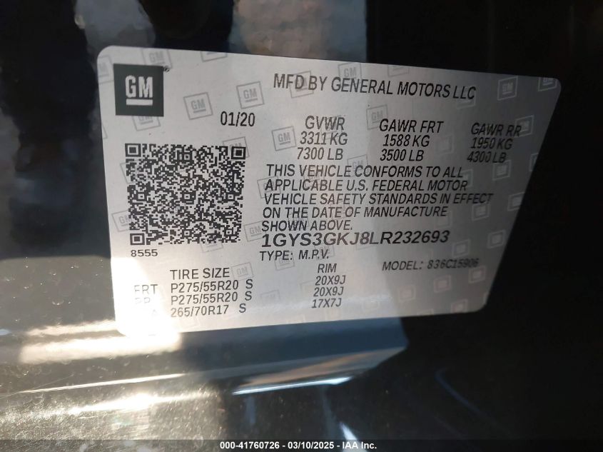 Color BlackCylinders 8Drive UnknownVIN 1GYS3GKJ8LR******State Run & Drive VerifiedDamage It is unknownAuction date 2025-03-26 AutoRIA