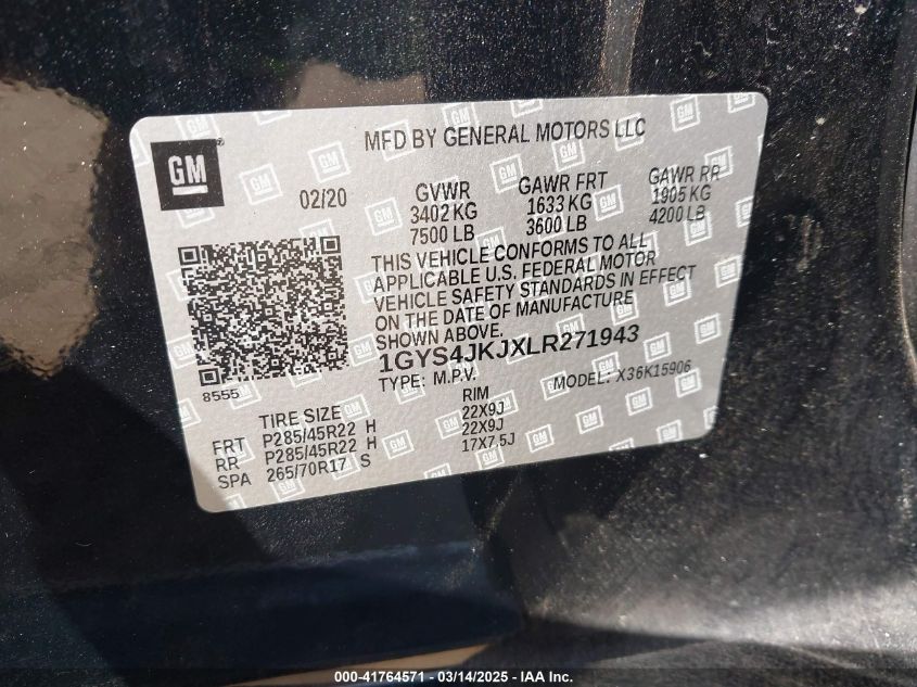 2020 CADILLAC ESCALADE 2020 Gasoline, 6.2, Full drive, VIN - 1GYS4JKJXLR****** from the USA