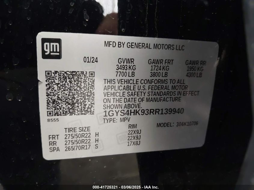2024 CADILLAC ESCALADE 2024 Gasoline, 6.2, Full drive, VIN - 1GYS4HK93RR****** from the USA