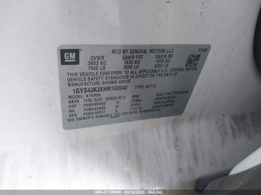 2017 CADILLAC ESCALADE 2017 Gasoline, 6.2, Full drive, VIN - 1GYS4JKJXHR****** from the USA