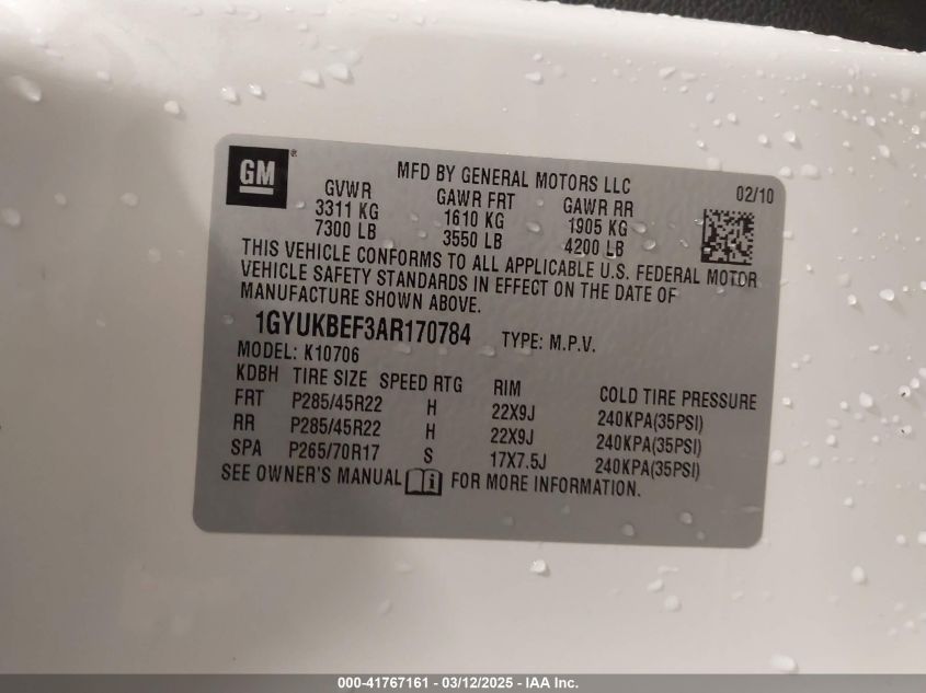2010 CADILLAC ESCALADE 2010 Gasoline, 6.2, Full drive, VIN - 1GYUKBEF3AR****** from the USA