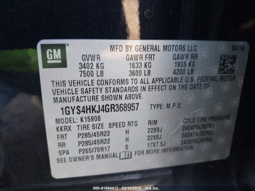 Color BlackCylinders 8Drive Full driveVIN 1GYS4HKJ4GR******State Run & Drive VerifiedDamage Front or back AutoRIA
