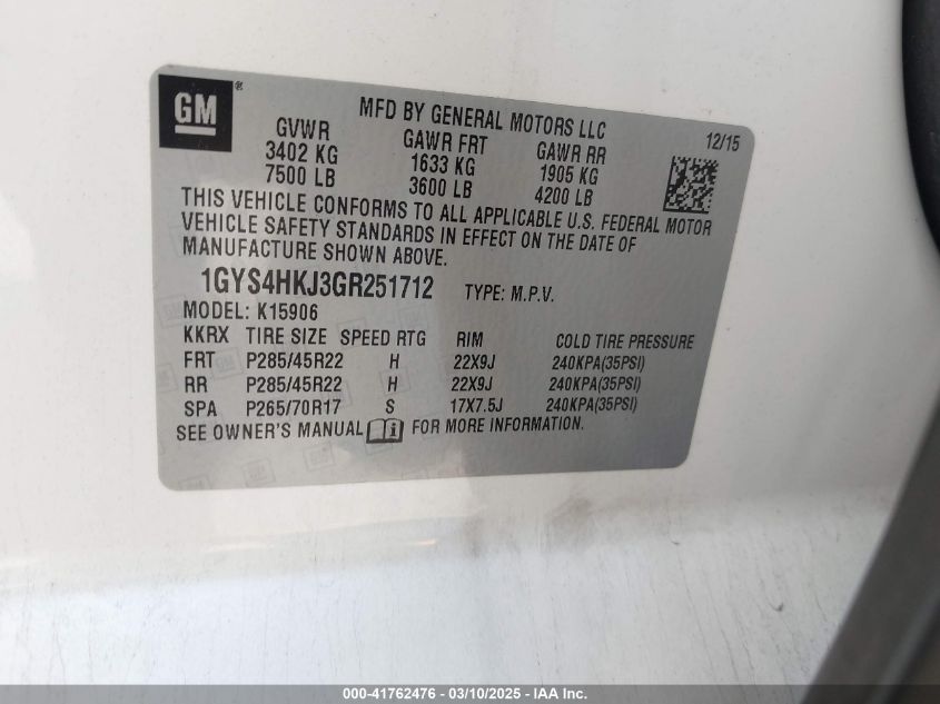 Color WhiteCylinders 8Drive Full driveVIN 1GYS4HKJ3GR******State Run & Drive VerifiedDamage Front left AutoRIA