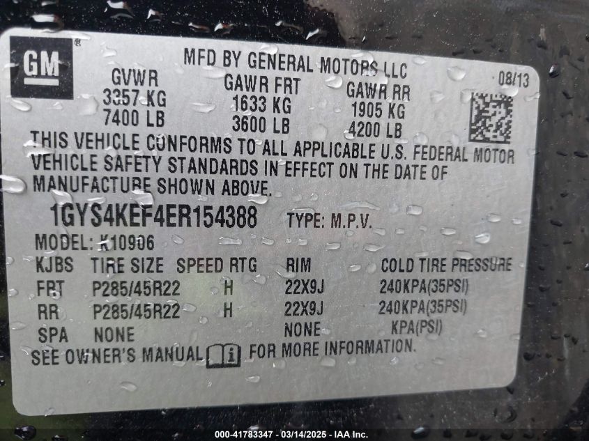 2014 CADILLAC ESCALADE 2014 Gasoline, 6.2, Full drive, VIN - 1GYS4KEF4ER****** from the USA