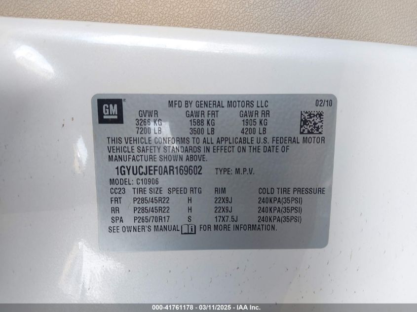 2010 CADILLAC ESCALADE 2010 Gasoline, 6.2, Unknown, VIN - 1GYUCJEF0AR****** from the USA