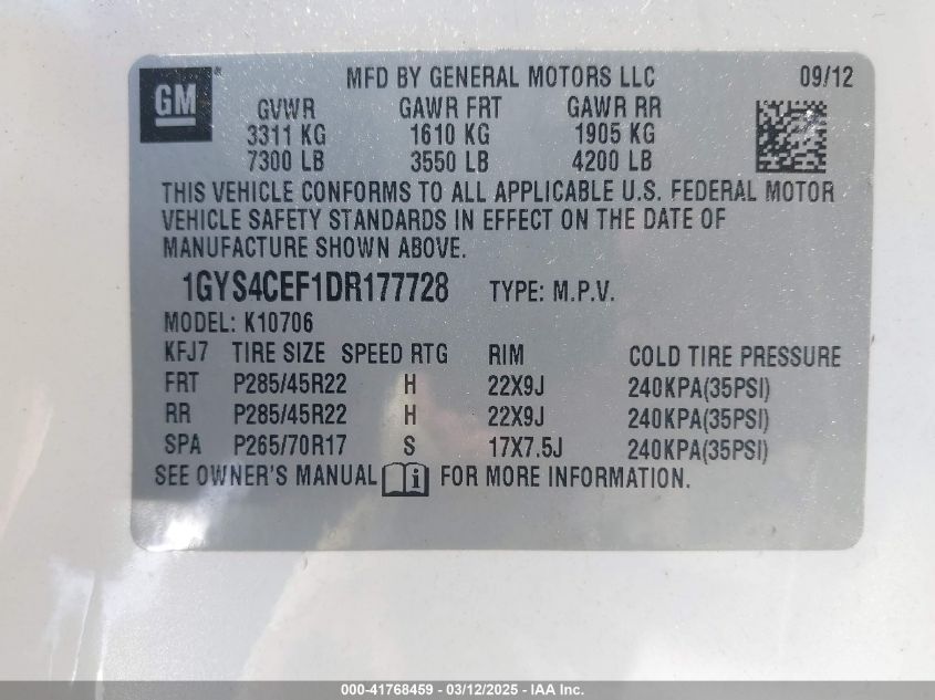 Color CreamyCylinders 8Drive Full driveVIN 1GYS4CEF1DR******State Run & Drive VerifiedDamage Front or back AutoRIA