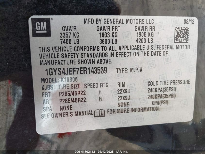 2014 CADILLAC ESCALADE 2014 Gasoline, 6.2, Full drive, VIN - 1GYS4JEF7ER****** from the USA