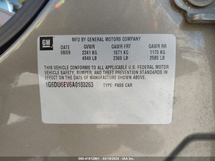 Color GoldCylinders 6Drive Rear wheel driveVIN 1G6DU6EV6A0******State Run & Drive VerifiedDamage Front right AutoRIA