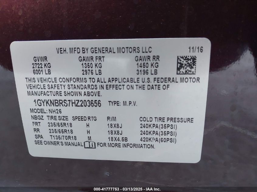 Color BurgundyCylinders 6Drive Front wheel driveVIN 1GYKNBRS7HZ******State Run & Drive VerifiedDamage Front right AutoRIA