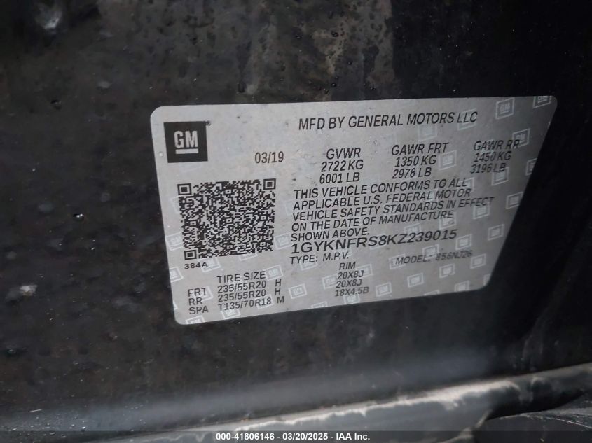 Color Cylinders 6Drive Full driveVIN 1GYKNFRS8KZ******State Run & Drive VerifiedDamage There is none AutoRIA