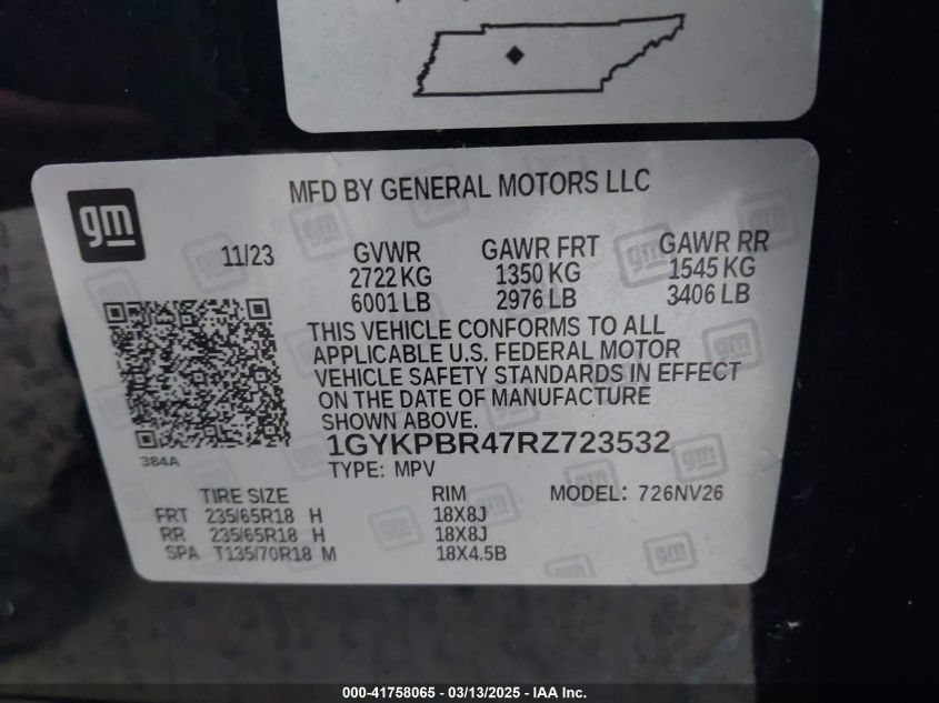 Color BlackCylinders 4Drive Full driveVIN 1GYKPBR47RZ******State Run & Drive VerifiedDamage Back