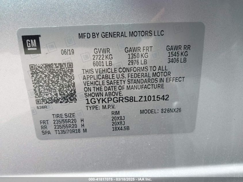 Color SilverCylinders 6Drive Full driveVIN 1GYKPGRS8LZ******State Run & Drive VerifiedDamage Left side AutoRIA