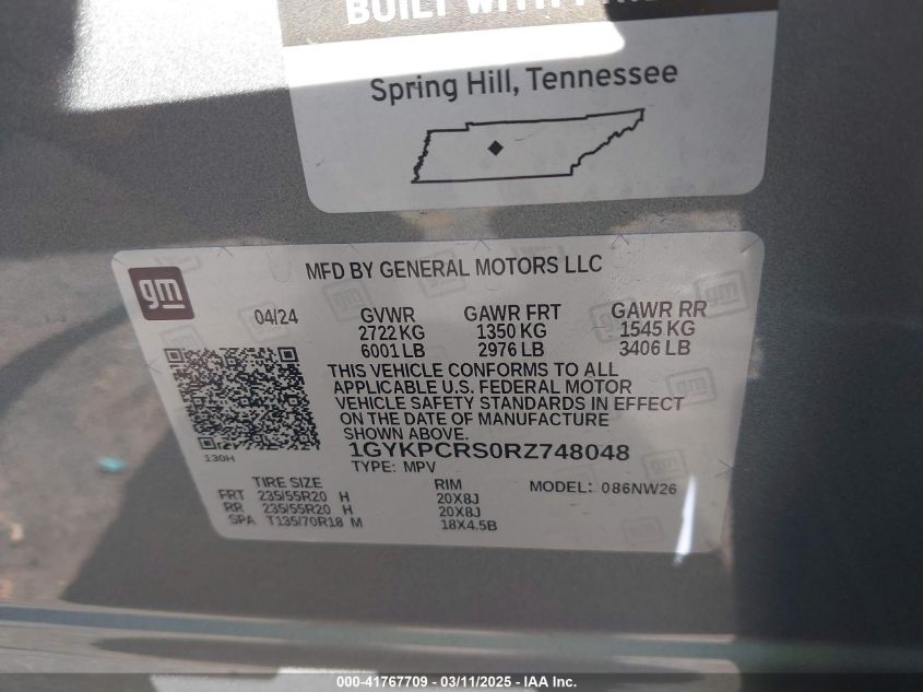 2024 CADILLAC XT6 2024 Gasoline, 3.6, Front wheel drive, VIN - 1GYKPCRS0RZ****** from the USA