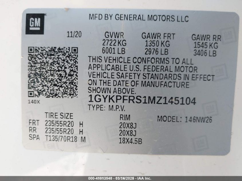 Color WhiteCylinders 6Drive Full driveVIN 1GYKPFRS1MZ******State Run & Drive VerifiedDamage From the sides AutoRIA