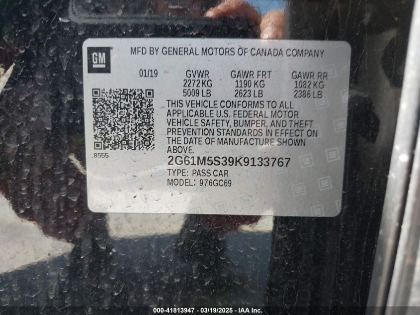 Color BlackCylinders 6Drive Front wheel driveVIN 2G61M5S39K9******State Run & Drive VerifiedDamage Rear left AutoRIA