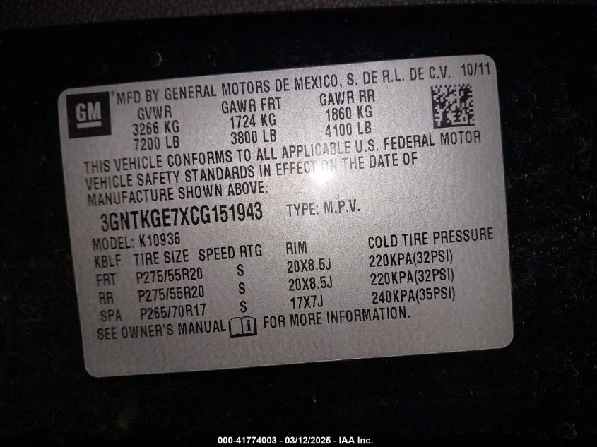 Color BlackCylinders 8Drive Full driveVIN 3GNTKGE7XCG******State Run & Drive VerifiedDamage Front left