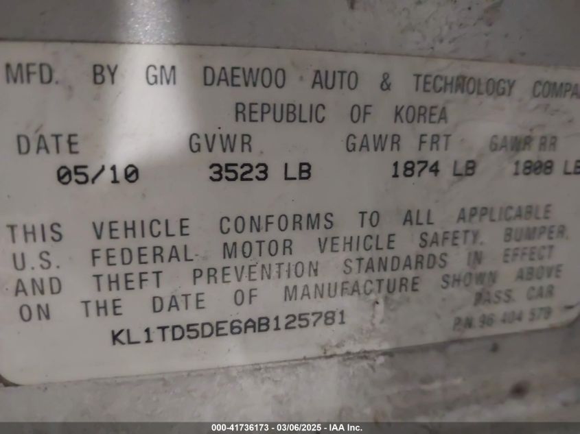 2010 CHEVROLET AVEO 2010 Gasoline, 1.6, Front wheel drive, VIN - KL1TD5DE6AB****** from the USA