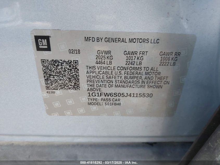 Color BlueDrive Front wheel driveVIN 1G1FW6S05J4******State Run & Drive VerifiedDamage Front or backAuction date 2025-03-27 AutoRIA