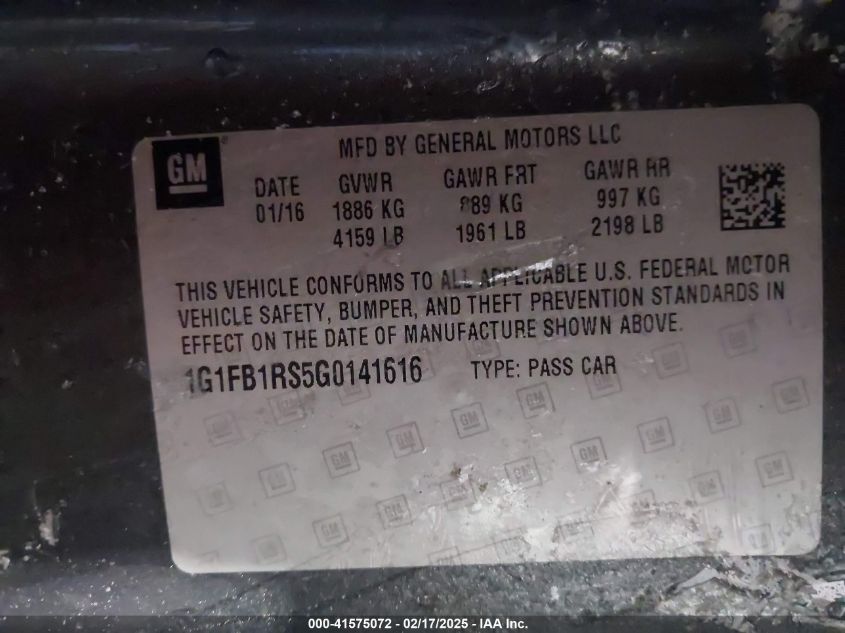 Color GrayCylinders 6Drive Rear wheel driveVIN 1G1FB1RS5G0******State Run & Drive VerifiedDamage Front and back AutoRIA