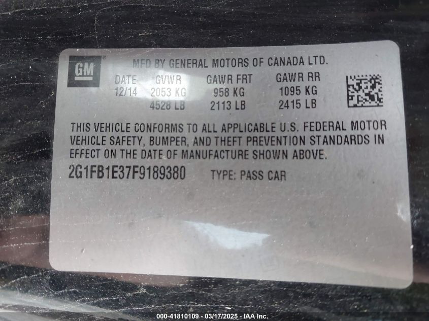 Color BlackCylinders 6Drive Rear wheel driveVIN 2G1FB1E37F9******State Run & Drive VerifiedDamage Vandalism AutoRIA