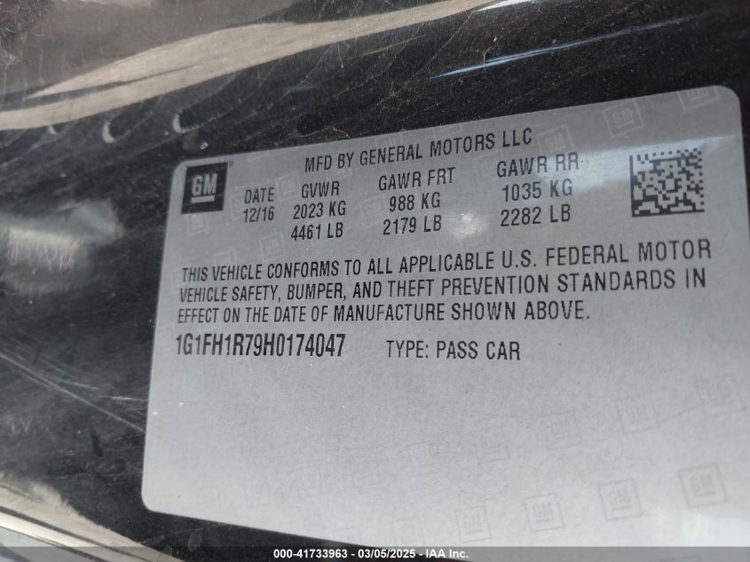 Color BlackCylinders 8Drive Rear wheel driveVIN 1G1FH1R79H0******State Run & Drive VerifiedDamage Front or back AutoRIA