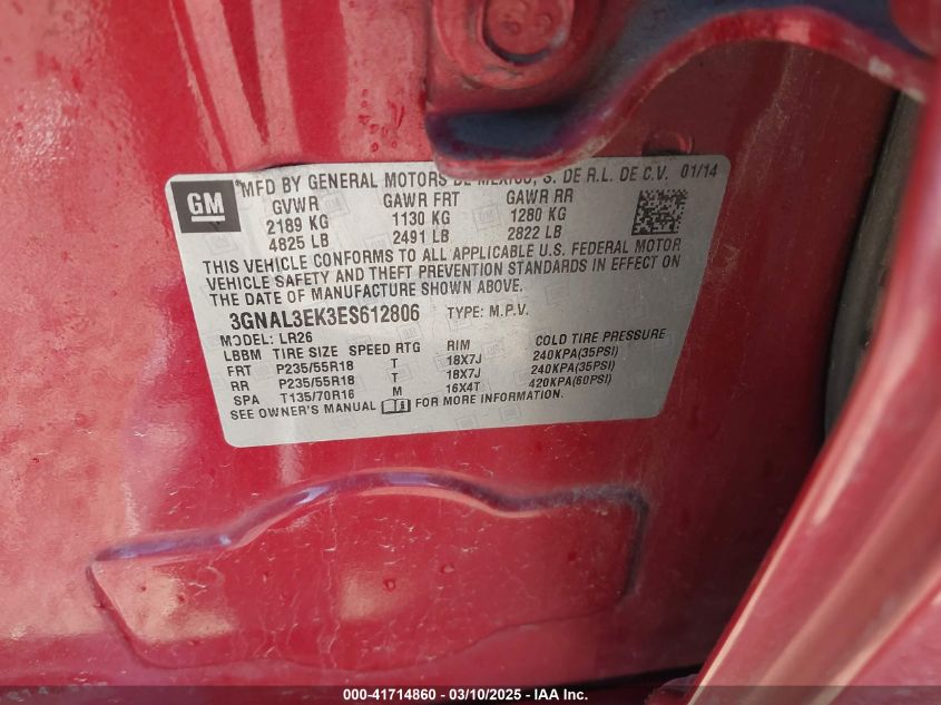 Color RedCylinders 4Drive Front wheel driveVIN 3GNAL3EK3ES******State Run & Drive VerifiedDamage Left sideAuction date 2025-03-20 AutoRIA
