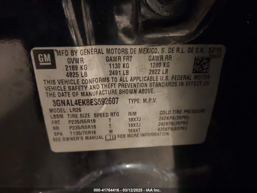 Color BlueCylinders 4Drive Front wheel driveVIN 3GNAL4EK8ES******State Run & Drive VerifiedDamage Front or back AutoRIA