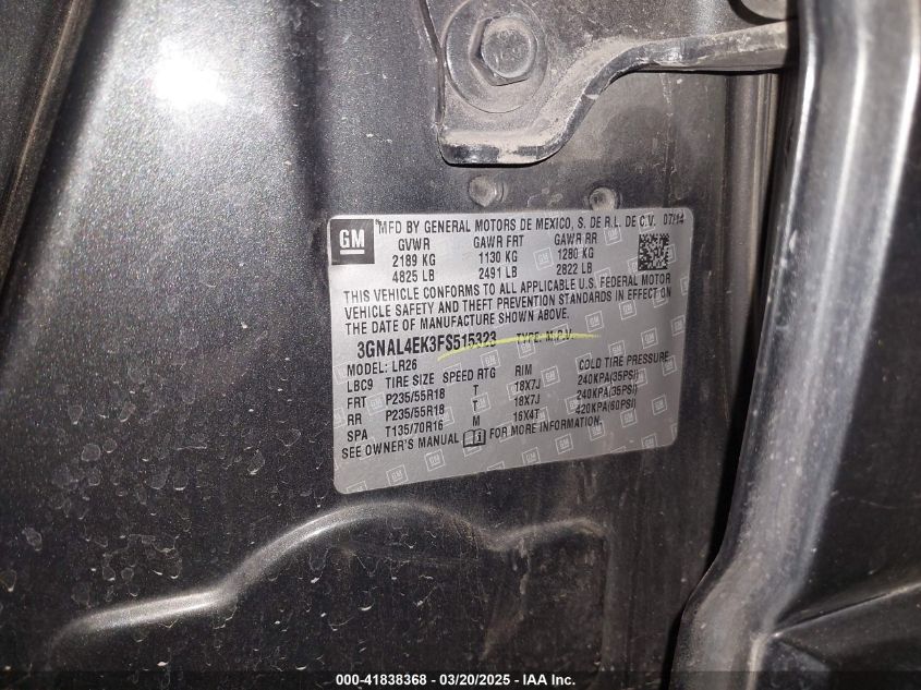 Color BlackCylinders 4Drive Front wheel driveVIN 3GNAL4EK3FS******State Run & Drive VerifiedDamage Back AutoRIA