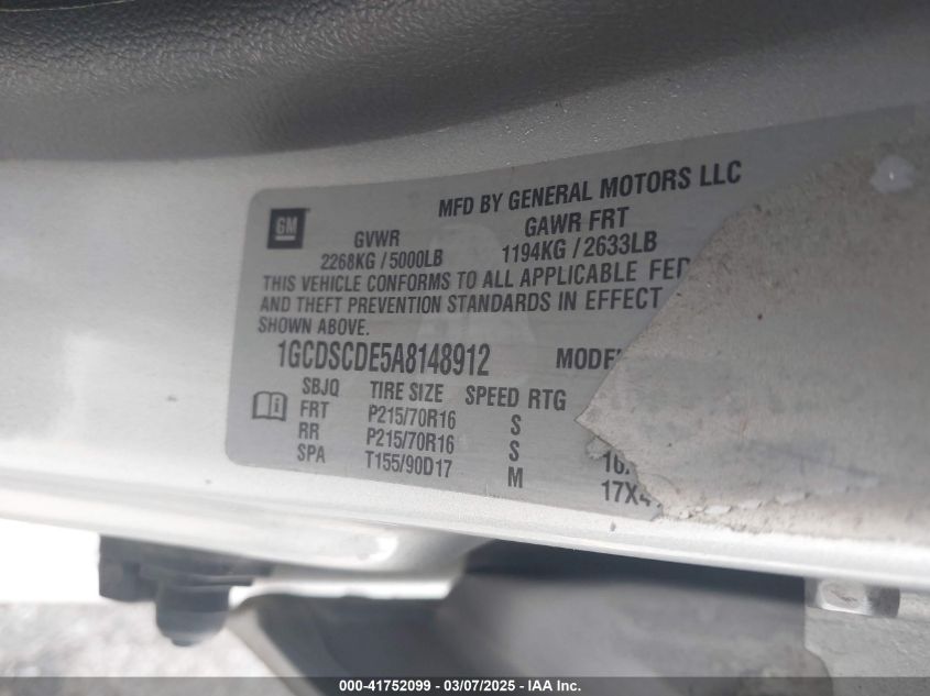 Color GrayCylinders 5Drive UnknownVIN 1GCDSCDE5A8******State Run & Drive VerifiedDamage Front or backAuction date 2025-03-25 AutoRIA