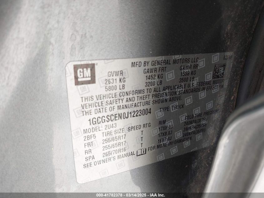 Color GrayCylinders 6Drive UnknownVIN 1GCGSCEN0J1******State Run & Drive VerifiedDamage From the sides AutoRIA