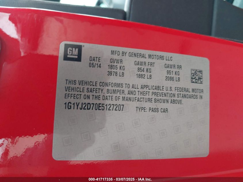 2014 CHEVROLET CORVETTE 2014 Gasoline, 6.2, Rear wheel drive, VIN - 1G1YJ2D70E5****** from the USA