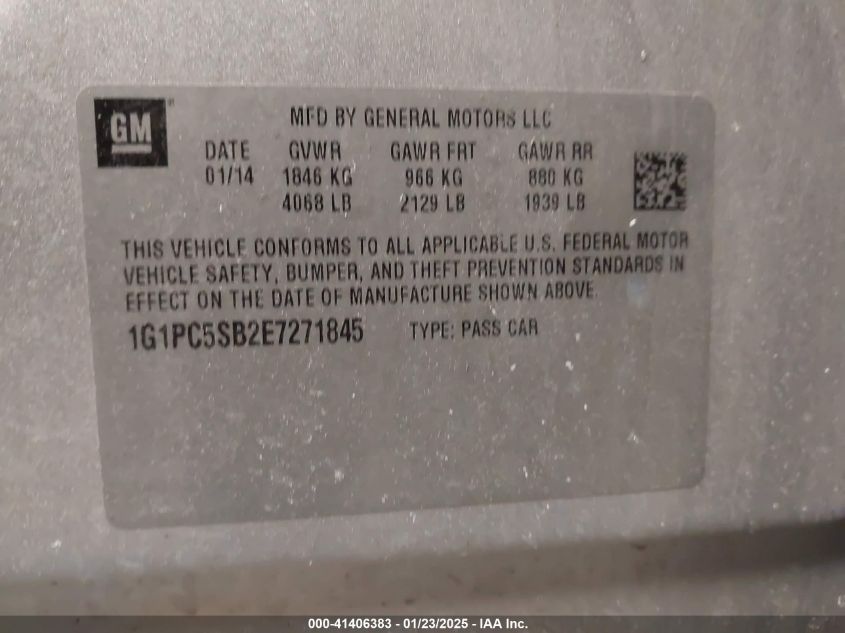 Color SilverCylinders 4Drive Front wheel driveVIN 1G1PC5SB2E7******State Run & Drive VerifiedDamage Front or back AutoRIA