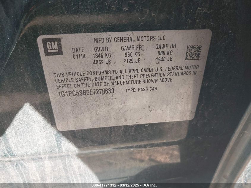 2014 CHEVROLET CRUZE 2014 Gasoline, 1.4, Front wheel drive, VIN - 1G1PC5SB5E7****** from the USA