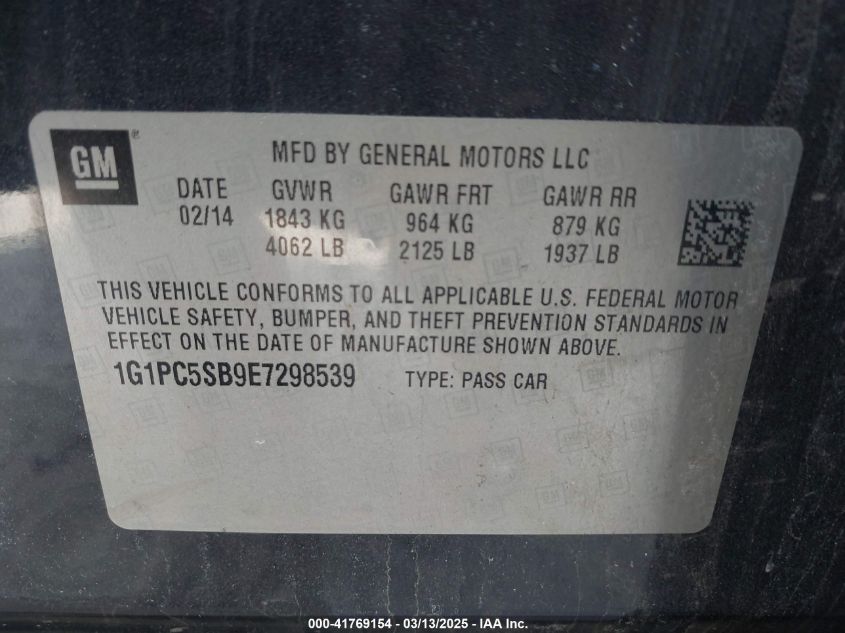 2014 CHEVROLET CRUZE 2014 Gasoline, 1.4, Front wheel drive, VIN - 1G1PC5SB9E7****** from the USA