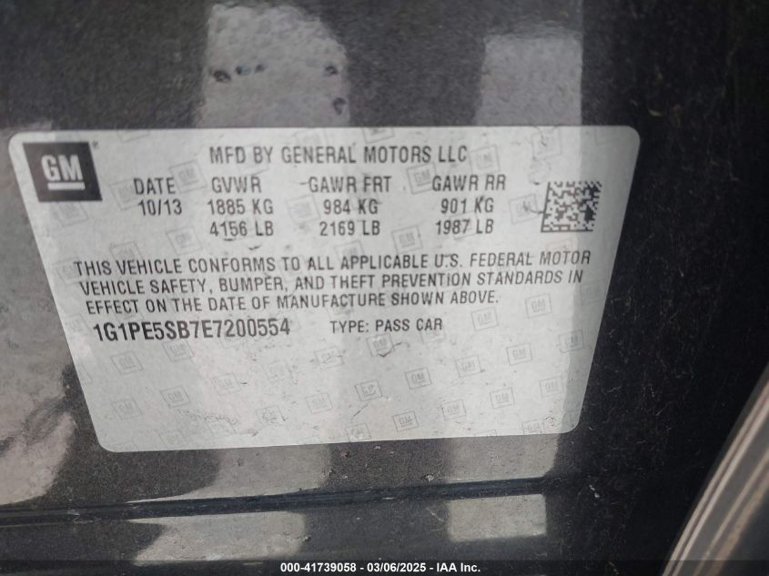 2014 CHEVROLET CRUZE 2014 Gasoline, 1.4, Front wheel drive, VIN - 1G1PE5SB7E7****** from the USA