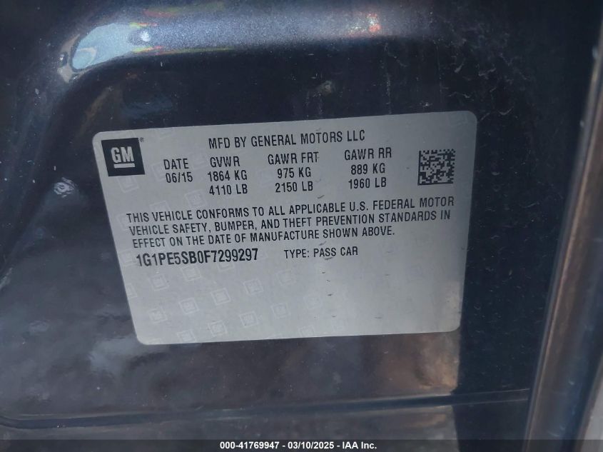 Color BlackCylinders 4Drive Front wheel driveVIN 1G1PE5SB0F7******State Run & Drive VerifiedDamage InsignificantAuction date 2025-03-26 AutoRIA