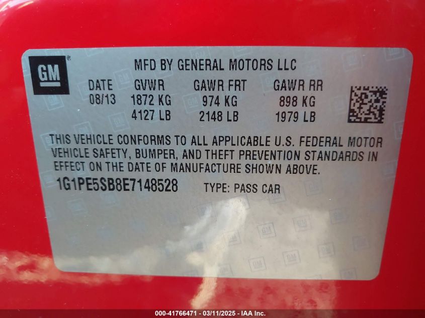 Color RedCylinders 4Drive Front wheel driveVIN 1G1PE5SB8E7******State Run & Drive VerifiedDamage Front or back AutoRIA